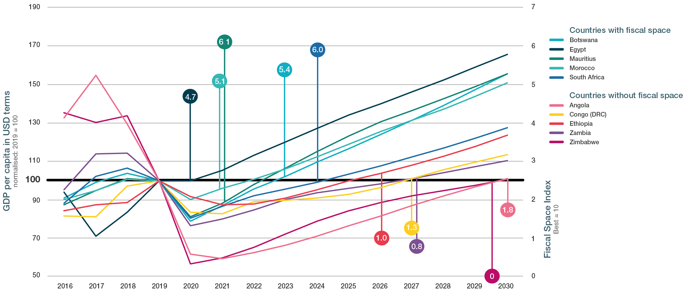 L'impact immédiat de la COVID-19 fera subir à l'Afrique sa première récession en 25 ans, mais le plus inquiétant est le manque de marge de manœuvre budgétaire dont disposent les gouvernements africains pour engager des dépenses inhérentes à la relance. Pour de nombreux pays, la reprise économique devra être menée par un secteur privé déjà affaibli et encore fragilisé par la pandémie.