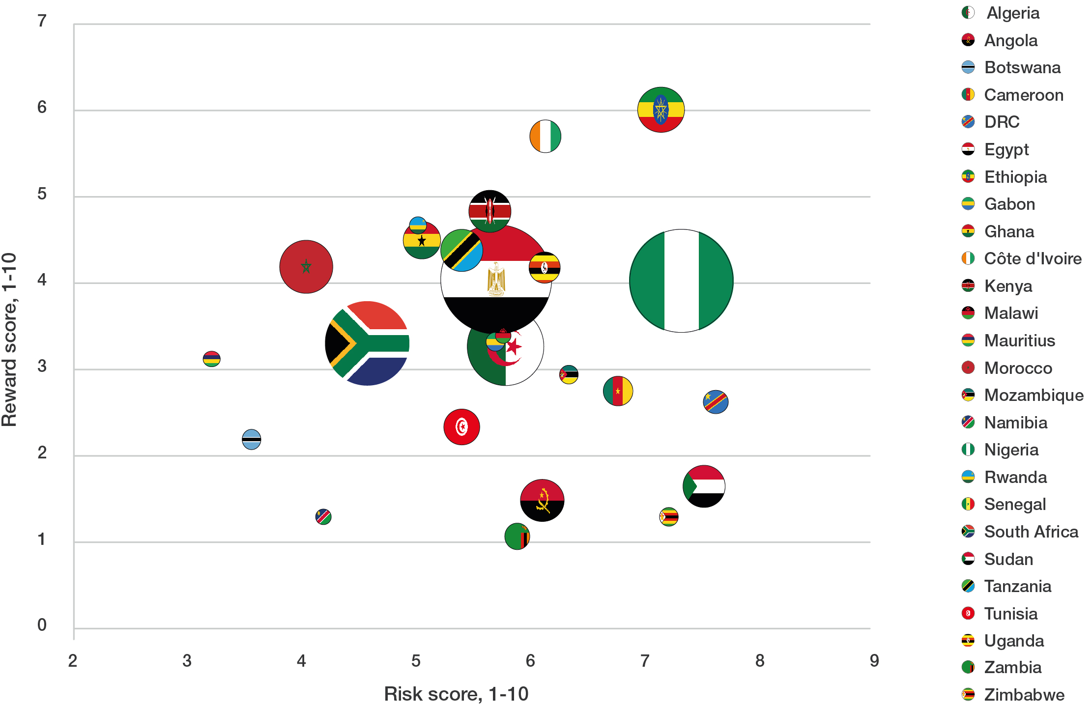 L'Africa Risk-Reward Index est défini par la combinaison des scores de risque et de performance, en intégrant l'analyse du risque économique et politique par Control Risks et NKC African Economics, filiale d'Oxford Economics centrée sur l'Afrique.